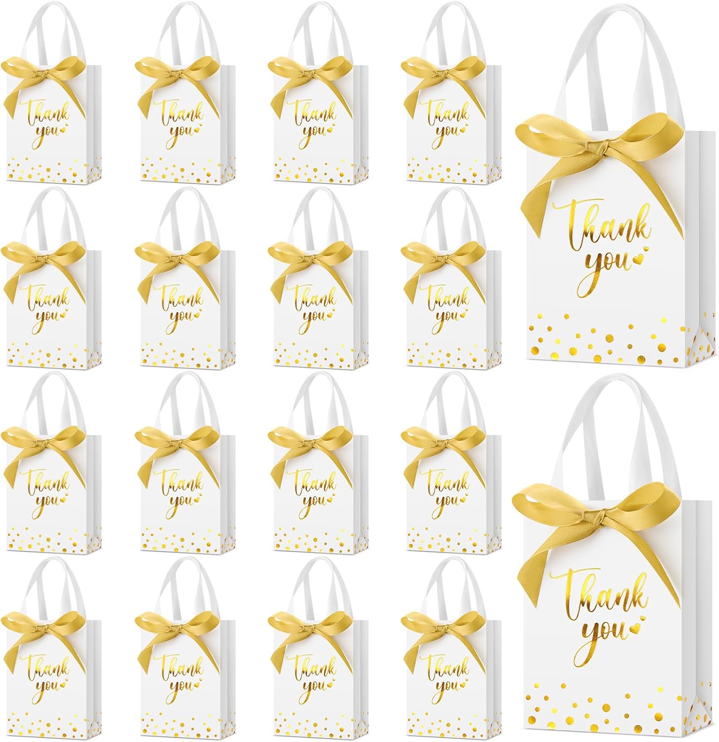 - Small Gift Bag Bulk: you will receive 36 white thank you gift bags with handles and 36 gold ribbons, sufficient quantity to meet your various needs for party favors, gift wrapping, etc., and you can also share these party favor bags with friends and family