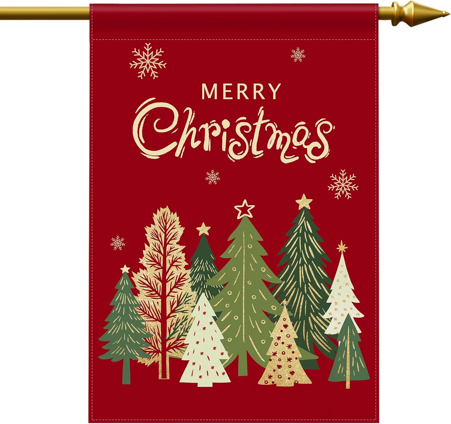 - Festive Holiday Design - These Large Christmas Garden Flags add winter Christmas scene with stars, Christmas trees, and Merry Christmas message. Creating a warm Christmas festive atmosphere, creates fun and vibrant addition.