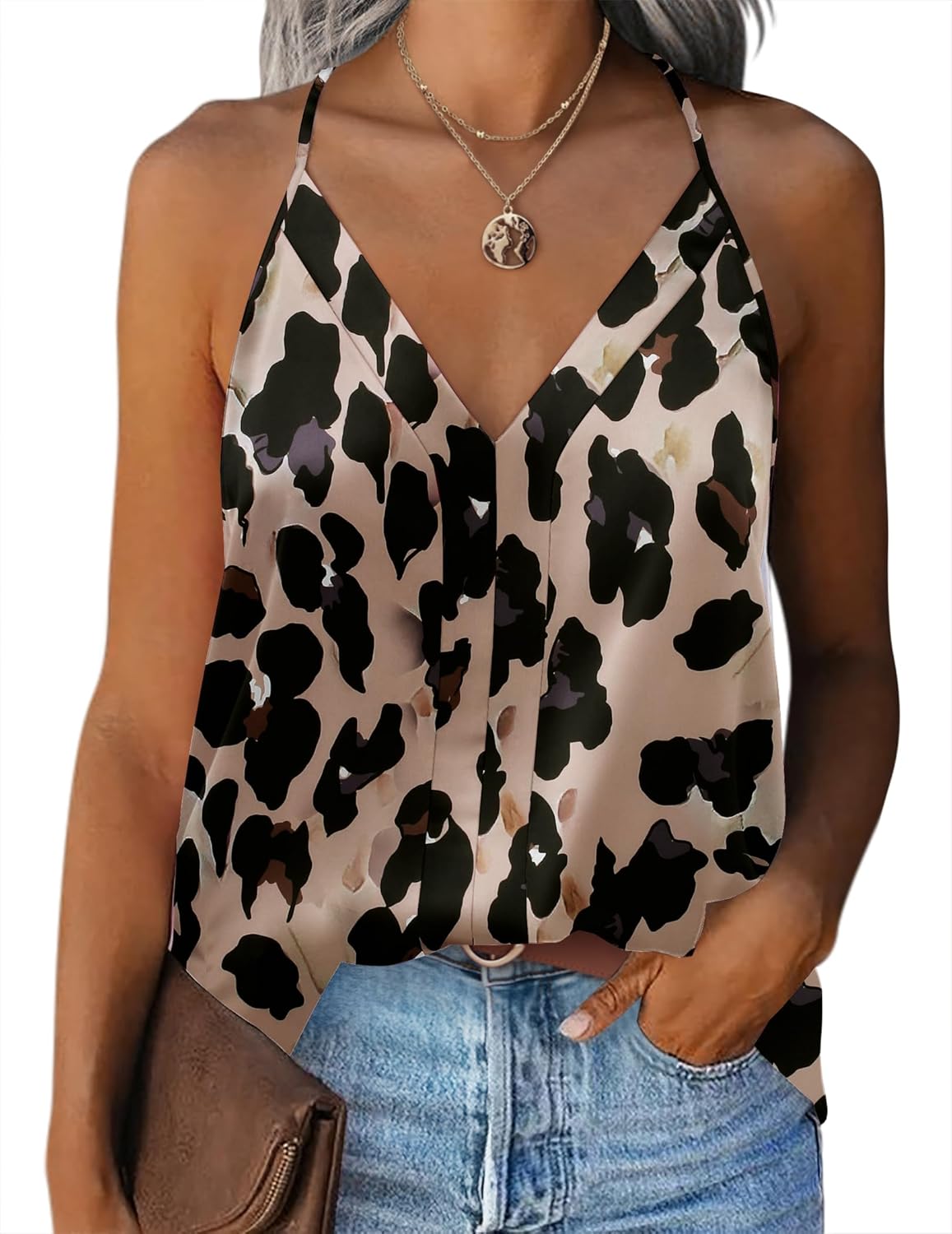 Zeagoo Womens Silk Satin Tank Tops V Neck Sleeveless Camisole Cami Spaghetti Straps Blouse Summer Loose Racerback Shirt