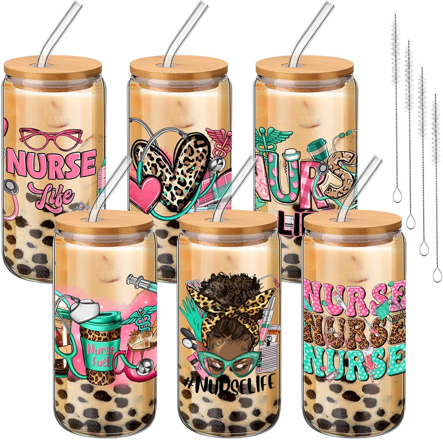 - Nurse Appreciation Gifts: the package comes with 6 can shaped nurse mug in 6 different styles, each equipped with 1 bamboo lid and 1 glass straw, and 4 straw brushes are included to help your cleaning of straws and cups, convenient for your daily use, or as gifts