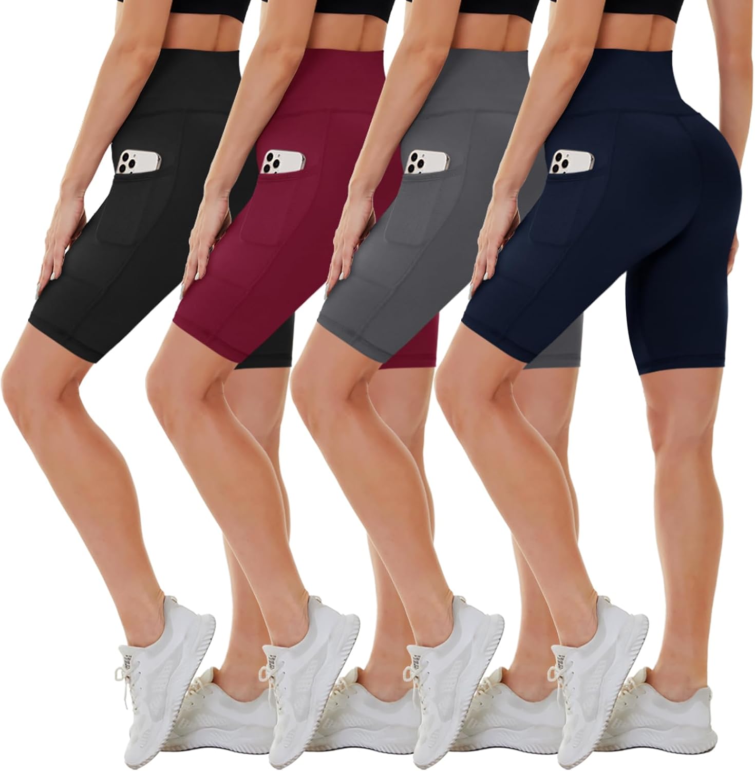 CAMPSNAIL 4 Pack Biker Shorts for Women High Waist - 5"/8" Tummy Control Soft Athletic Yoga Workout Running Gym Shorts