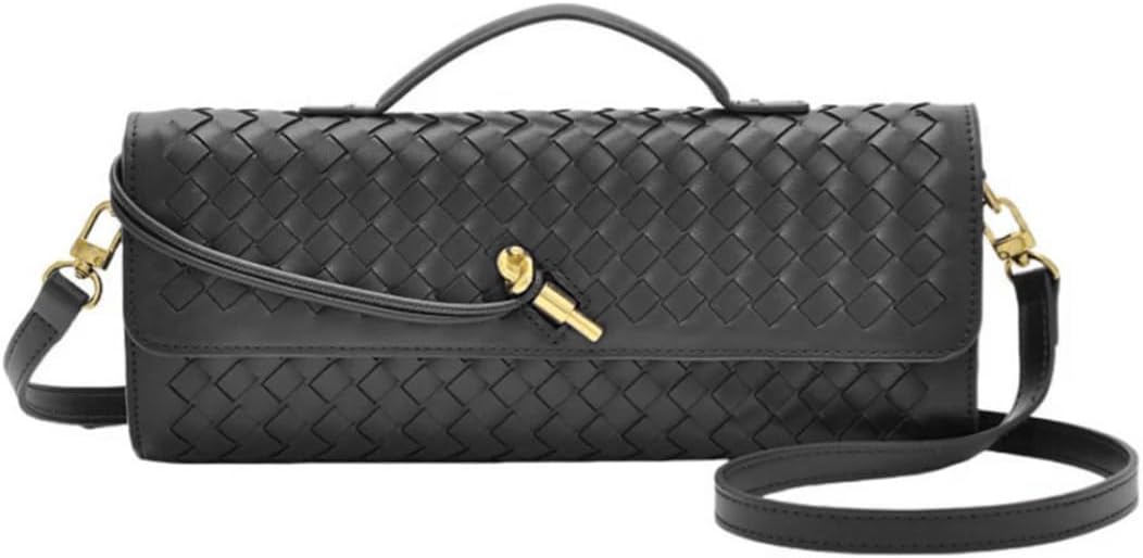 YXBQueen Woven Bag for Women Black Purse Shoulder Bag Vegan Leather Handbags Clutch Purses for Women