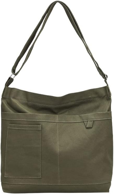 Economical Cotton Canvas Tote Bag,Women Hobo Shoulder Bag Crossbody Handbag with 3 External Pocket,Zipper Closure