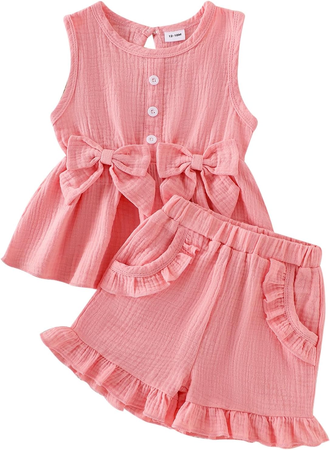 Baby Girl Clothes Toddler Summer Outfits Cute Bow Sleeveless Top and Ruffle Shorts 2pc Set 1-5 Years Old