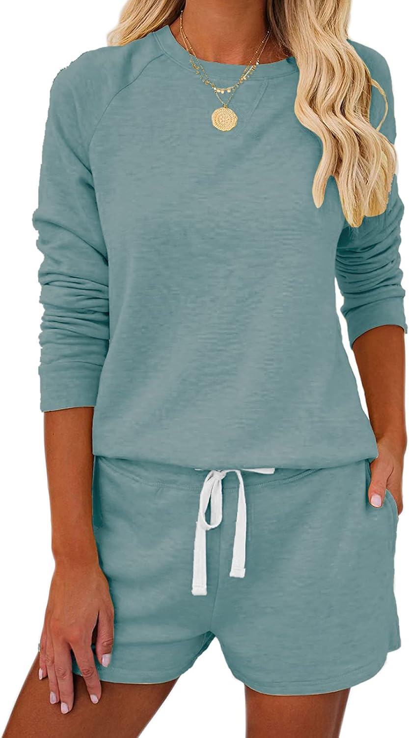 Metietila Women’s Long Sleeve Pajamas Set PJ Sets Casual Pullover and Shorts PJs Jogger Set Sleepwear Loungewear