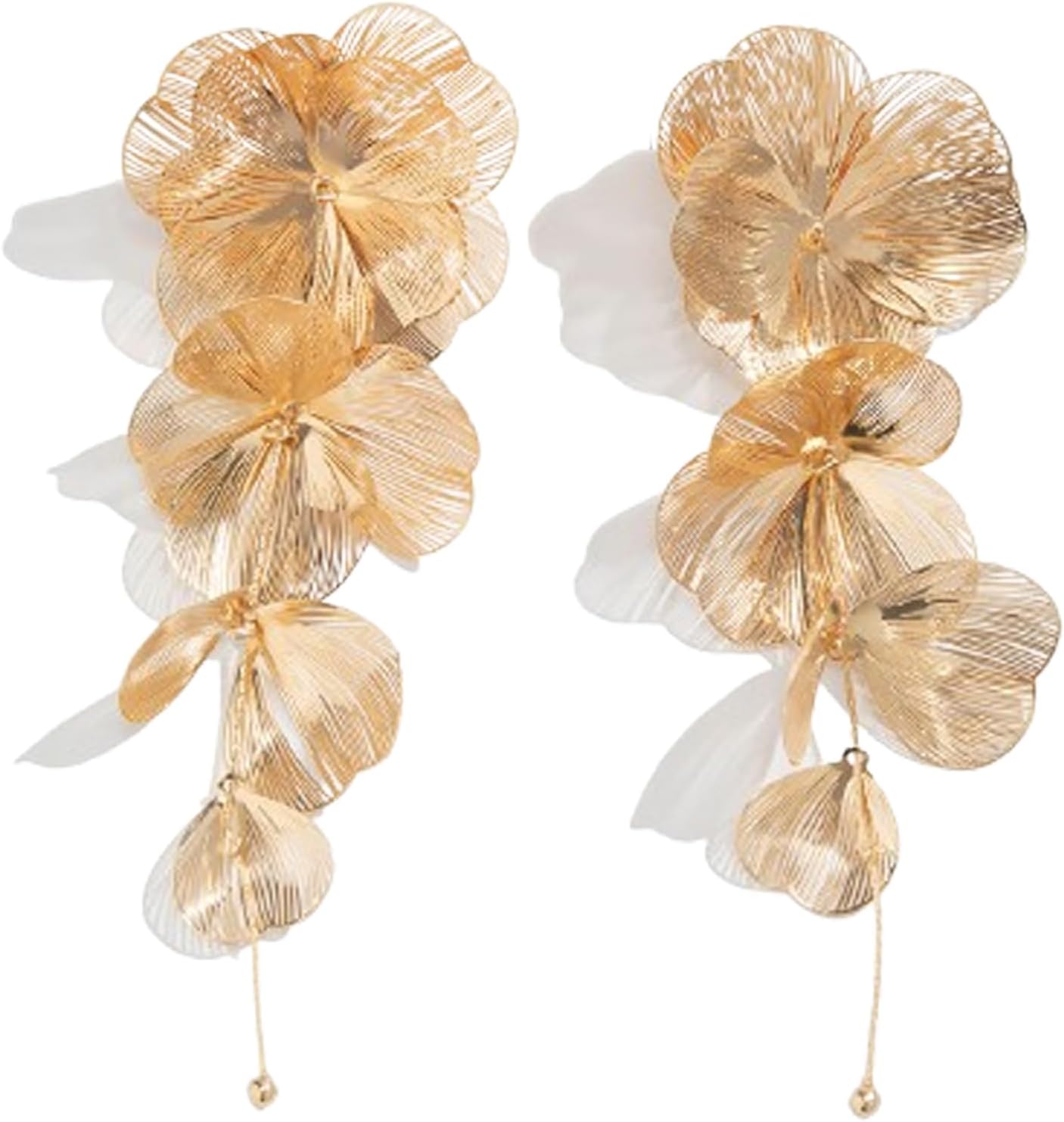 Gold Statement Flower Earrings,Chunky Punk Bunch Dangle Ginkgo Biloba Leaf Tassel Earrings Large Metal Drop Ear Bohemian Layered Petal Floral Jewelry for Women