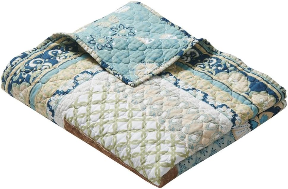 Greenland Home Thalia Velvet-Embellished Quilted Cotton Throw Blanket, 50 W x 60 L inches, Blue