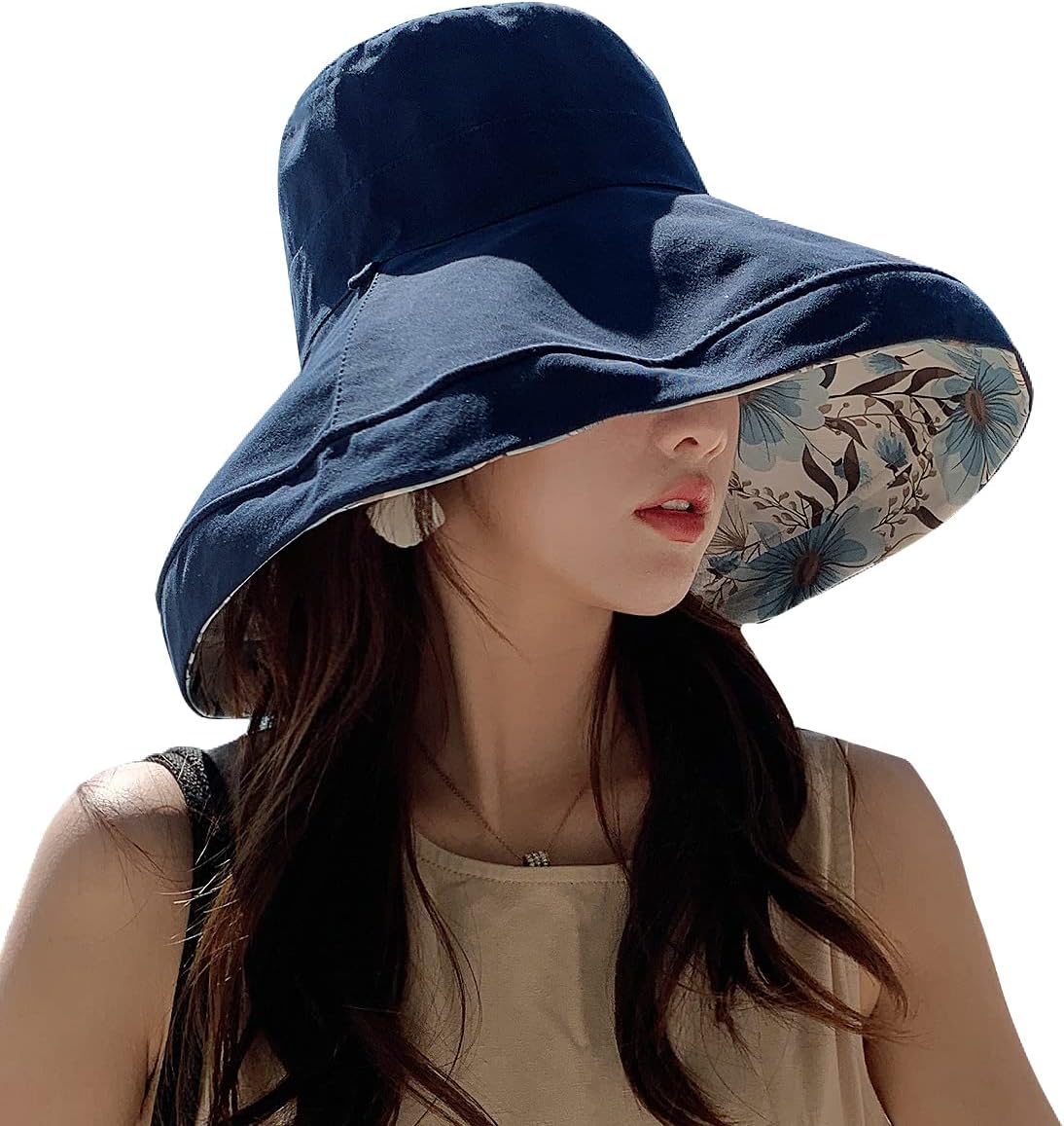 HUAMULAN Women Summer Sun Hat Wide Brim Wired Edge Floral Beach Bucket Hats Reversible Foldable Travel UV Protection Lady Hat