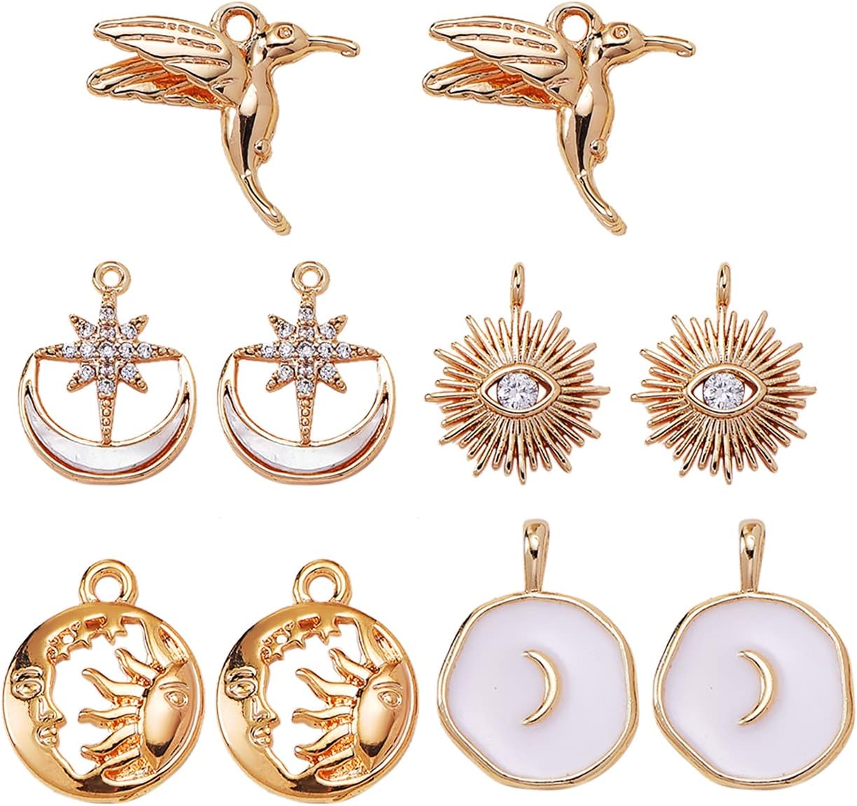 10 Pieces Brass Cubic Zirconia Charms Pendants Real 18K Gold Plated Charms with Freshwater Shell Sun for DIY Necklace Jewelry Making