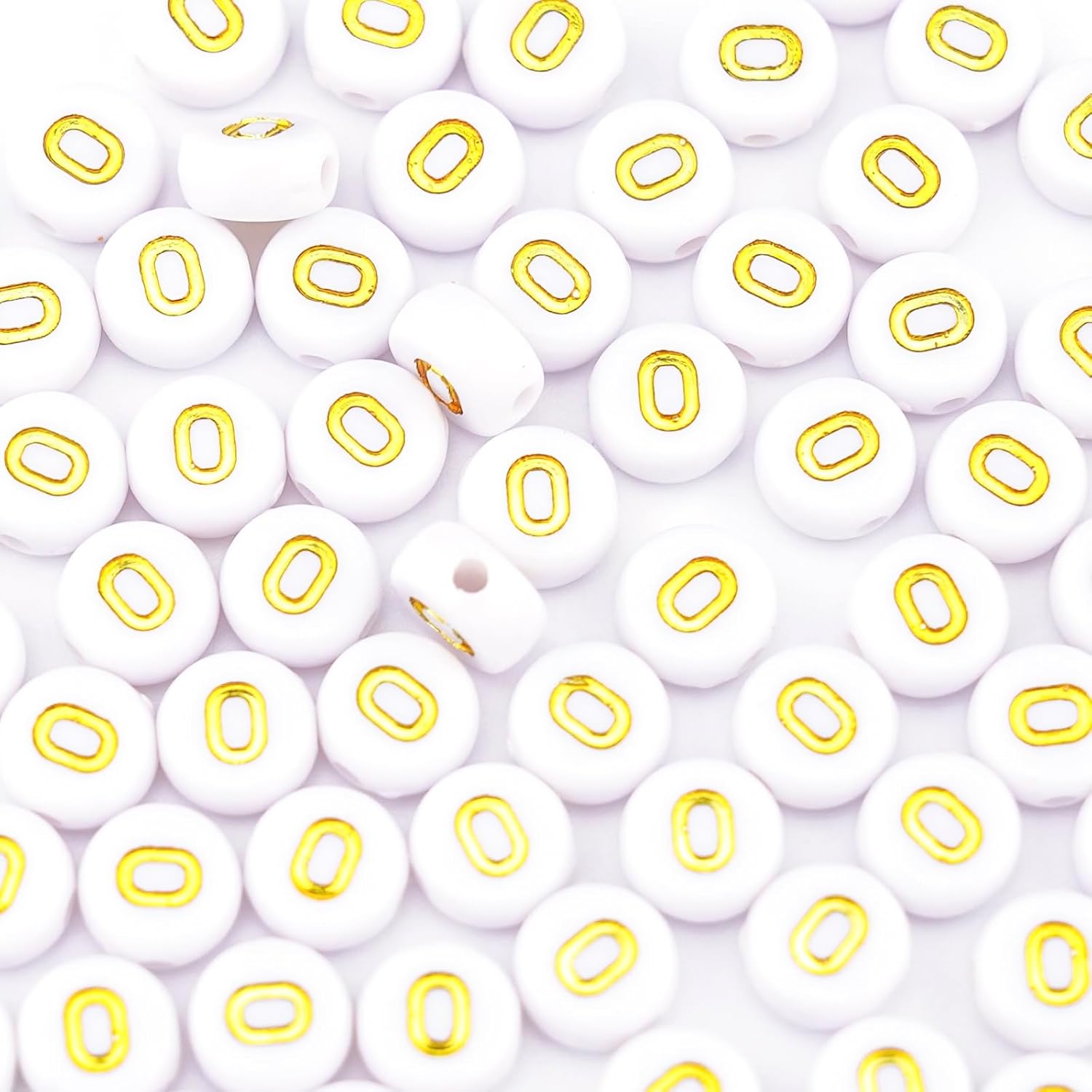 - Sufficient Letters - 300Pcs Gold Letter O Beads. Each letter bead is 7 mm (0.27 inches) in diameter, 4 mm (0.16 inches) thick, and has a 1 mm (0.04 inches) hole.