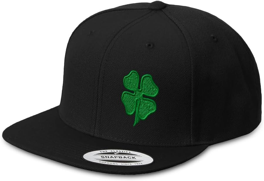 Snapback Hat for Men Flat Bill Left Side Panel Hats Four Leaf Clover Ireland Irish St Patrick's Embroidered Flat Bill Hat