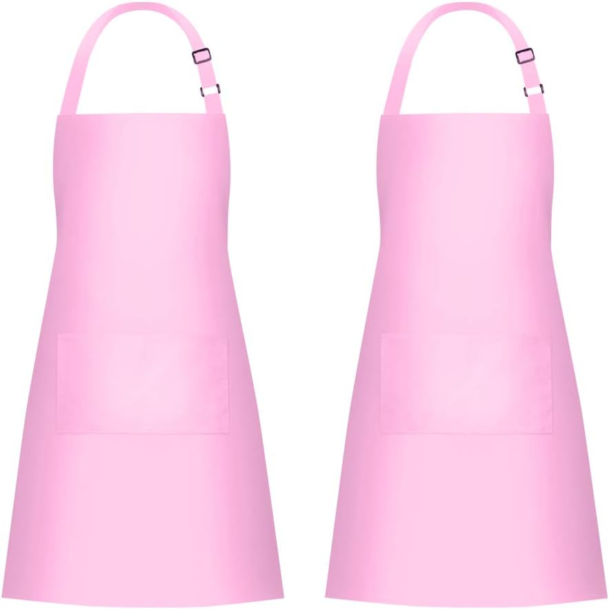 Jubatus 2 Pack Bib Aprons with 2 Pockets Cooking Chef Kitchen Apron for Women Men, Pink
