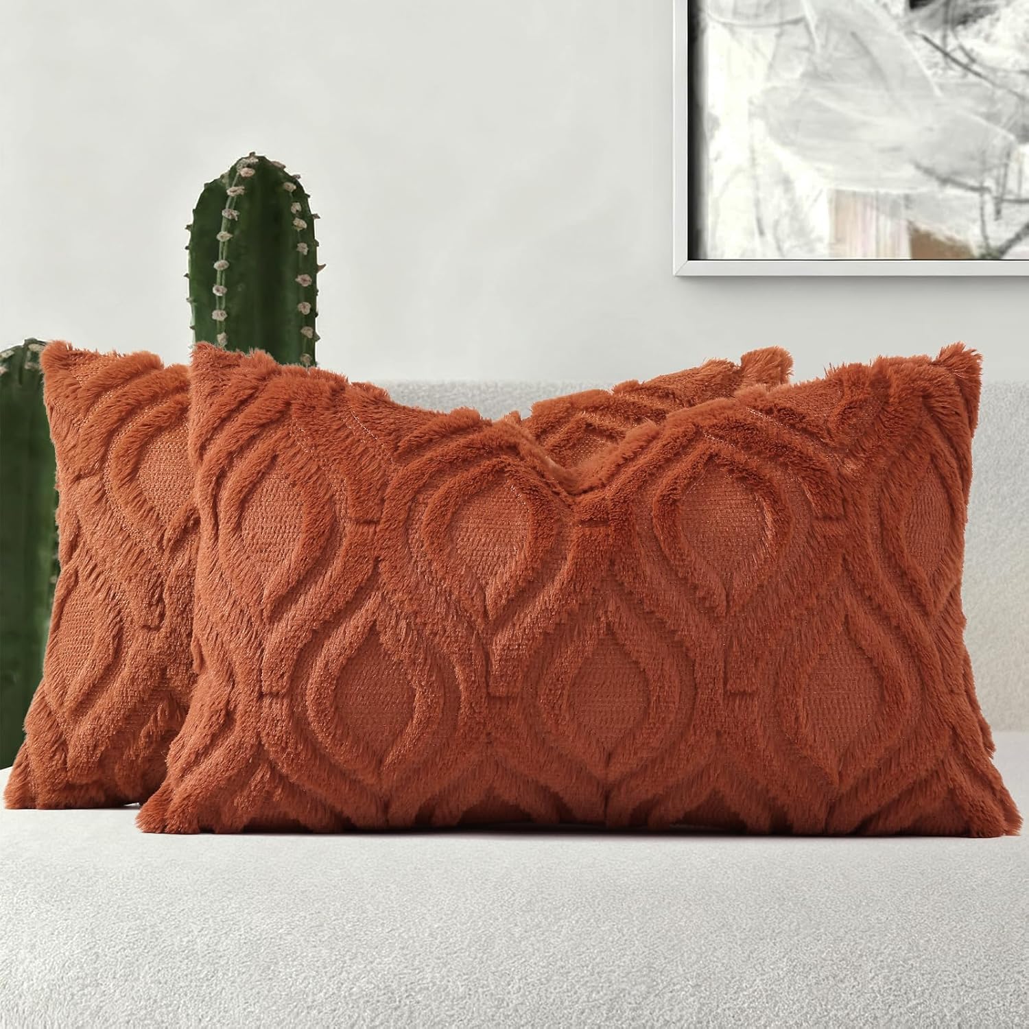 decorUhome Cozy Textured Throw Pillow Covers 12x20 Inch Set of 2, Soft Plush Faux Wool Rust Accent Couch Pillow Covers for Modern Farmhouse Sofa Bed Living Room