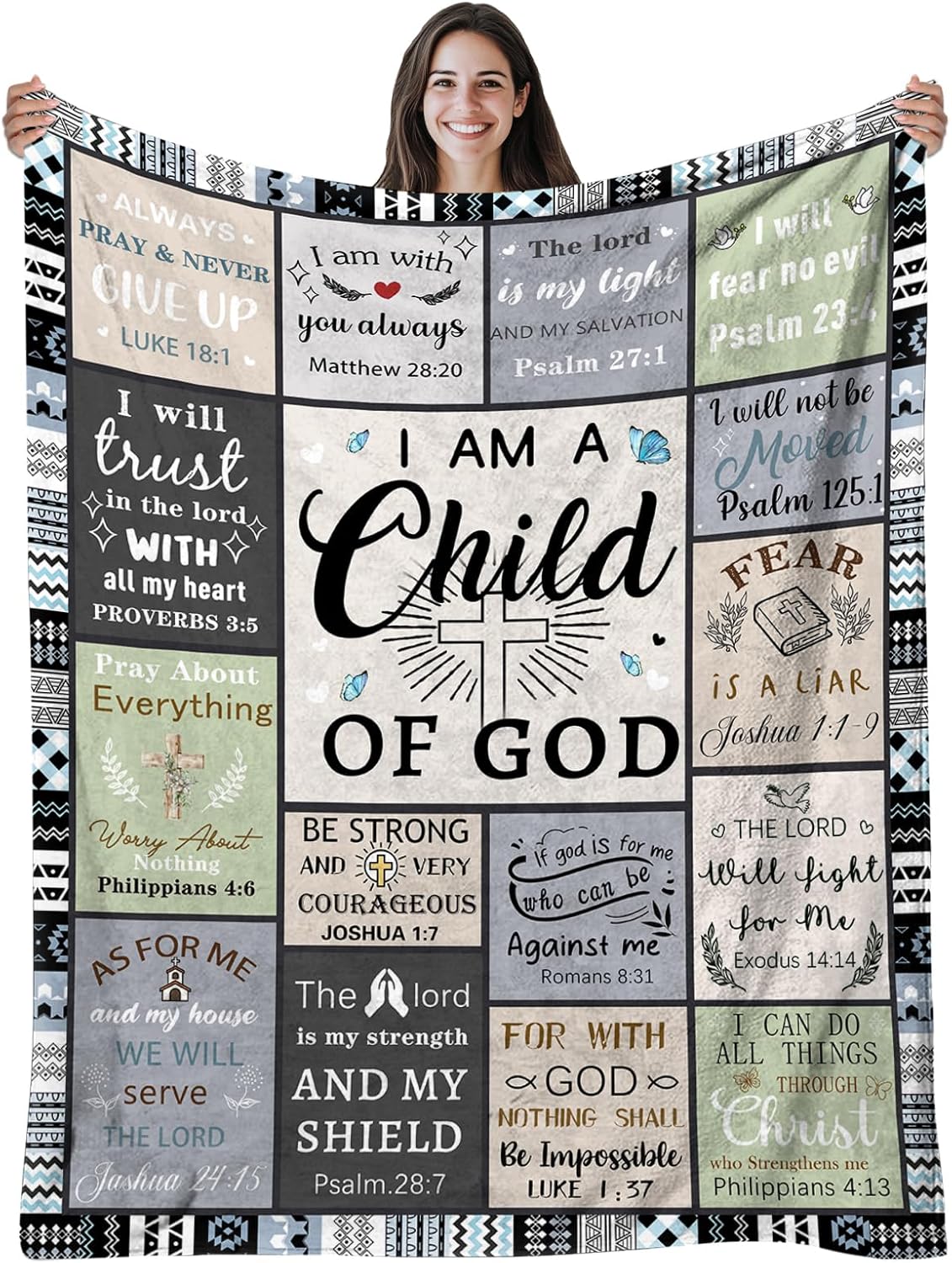 - Faith-Inspired Design: Featuring a reassuring message from God saying "I am a child of God," this Christian blanket is a symbol of faith and inspiration for women of all ages