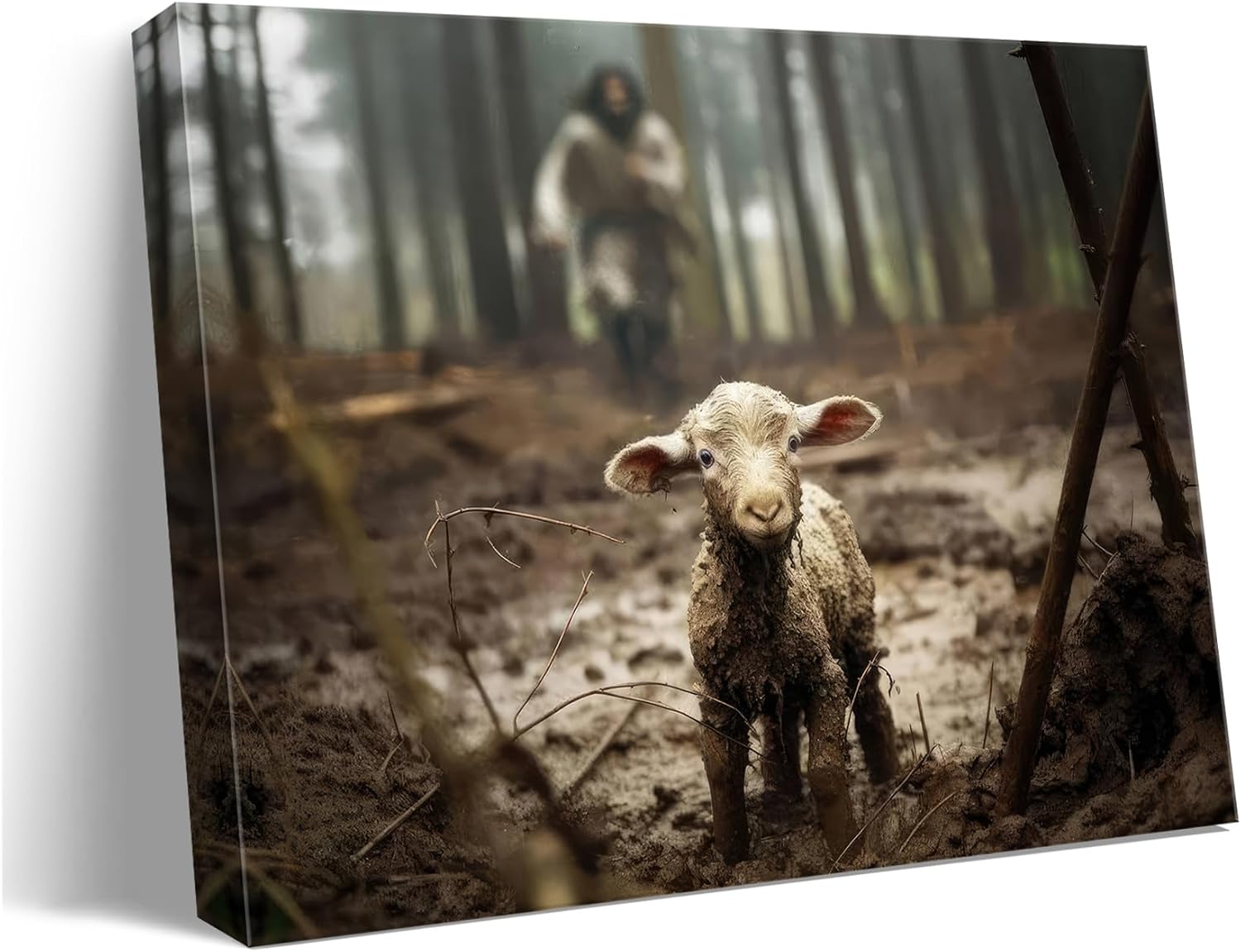 - matte canvas prints non glare 14X18 Inches, Beautifully crafted Jesus and Lamb wall art on canvas, perfect for adding a touch of spirituality to your home decor.Captivating Artwork: Experience the beauty of a "Jesus Runs After Lamb" picture, depicting the heartwarming scene of Jesus chasing after a lamb with love and care.