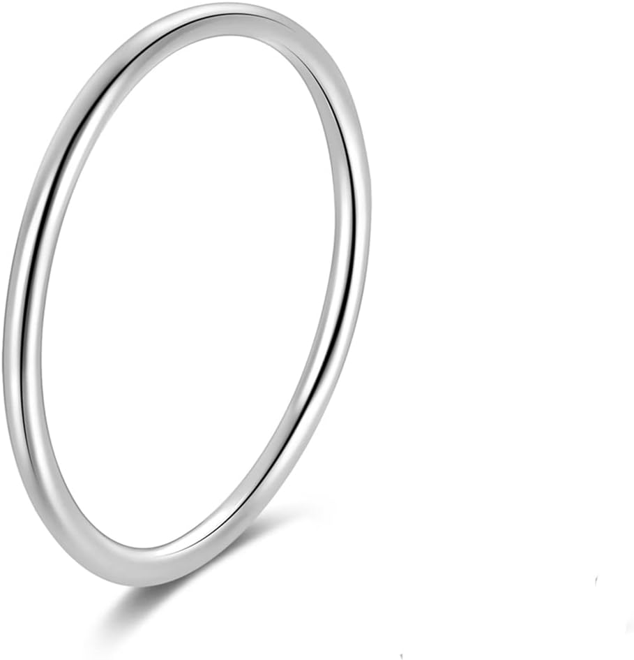 CANDYFANCY 925 Sterling Silver 1.2mm Stacking Midi Thin Rings Thumb Pinky Ring Stack Knuckle Rings for Women Band Ring Size 2.5-8.5