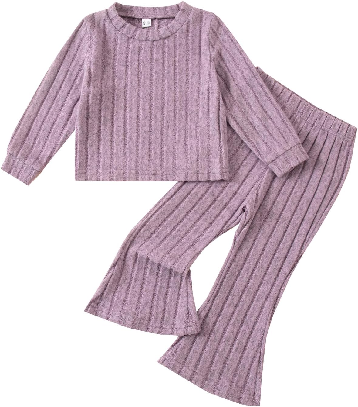 Toddler Baby Girl Outfits Soft Comfy Sweatshirt and Bell Bottom Pants Fall Winter Clothes Set for Girls