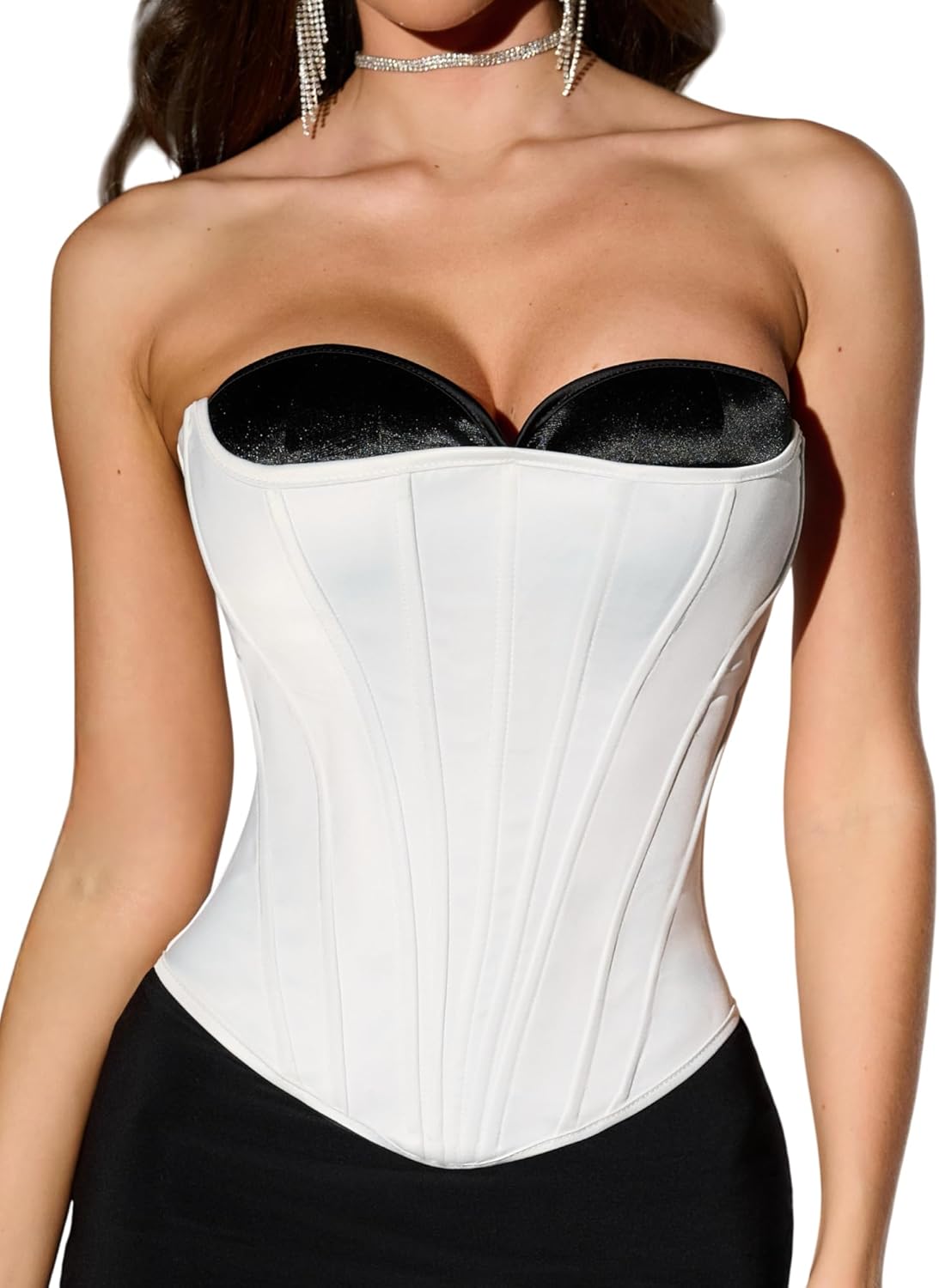 Overbust Corset Top for Women - 15 Steel Boned Lace Up Bustier Perfect Corset for Bridal Wedding or Cosplay