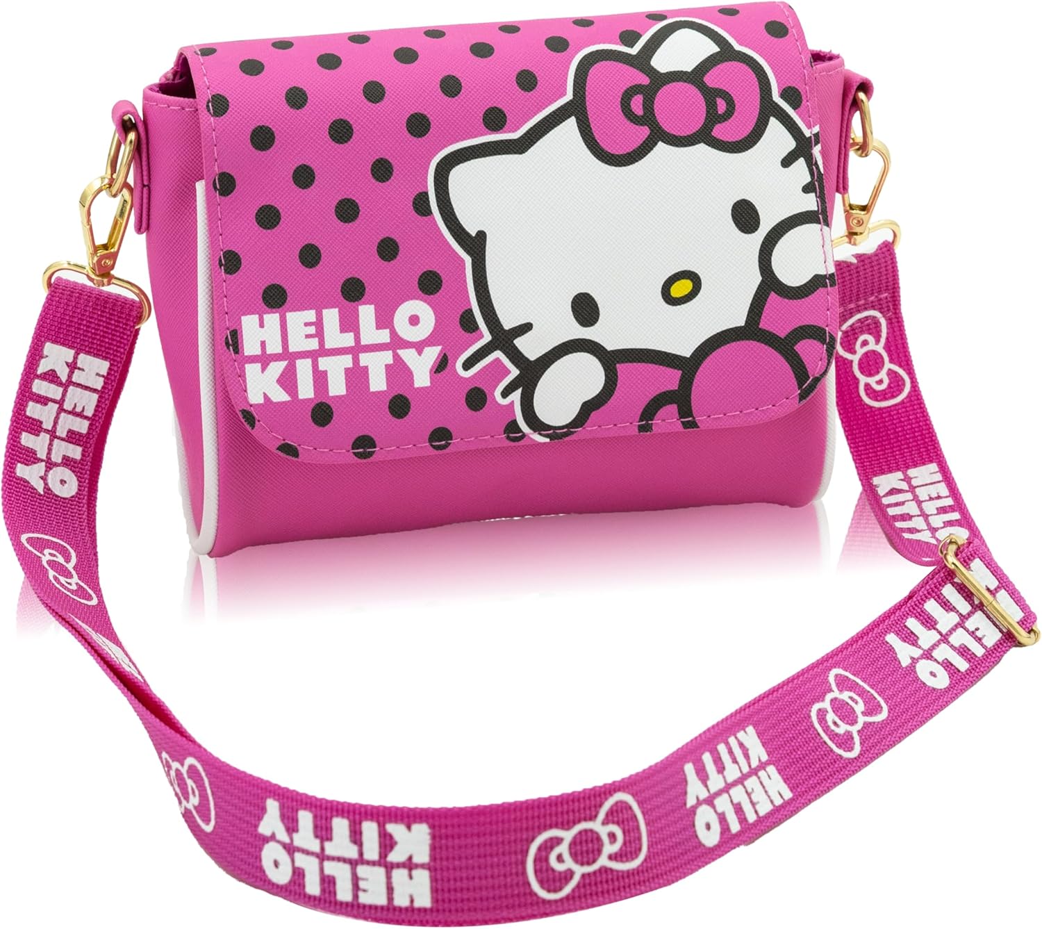 - OFFICIALLY LICENSED SANRIO HELLO KITTY HANDBAG: This officially licensed Sanrio Hello Kitty purse is a stylish fashion accessory for fans of the beloved character. With a playful flap closure and timeless Hello Kitty artwork, it can be worn as a kids’ crossbody handbag, a toddler purse, or a collectible Hello Kitty accessory for teens and women. Lightweight and charming, it adds Sanrio fashion to everyday outfits, casual outings, or special occasions.