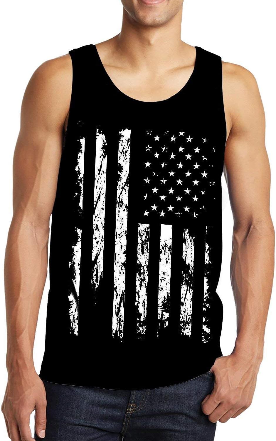 Mens Tank Tops 4th of July American Flag Athletic Sleeveless T-Shirt Tops Slim Fit Workout Gym Tees Black M