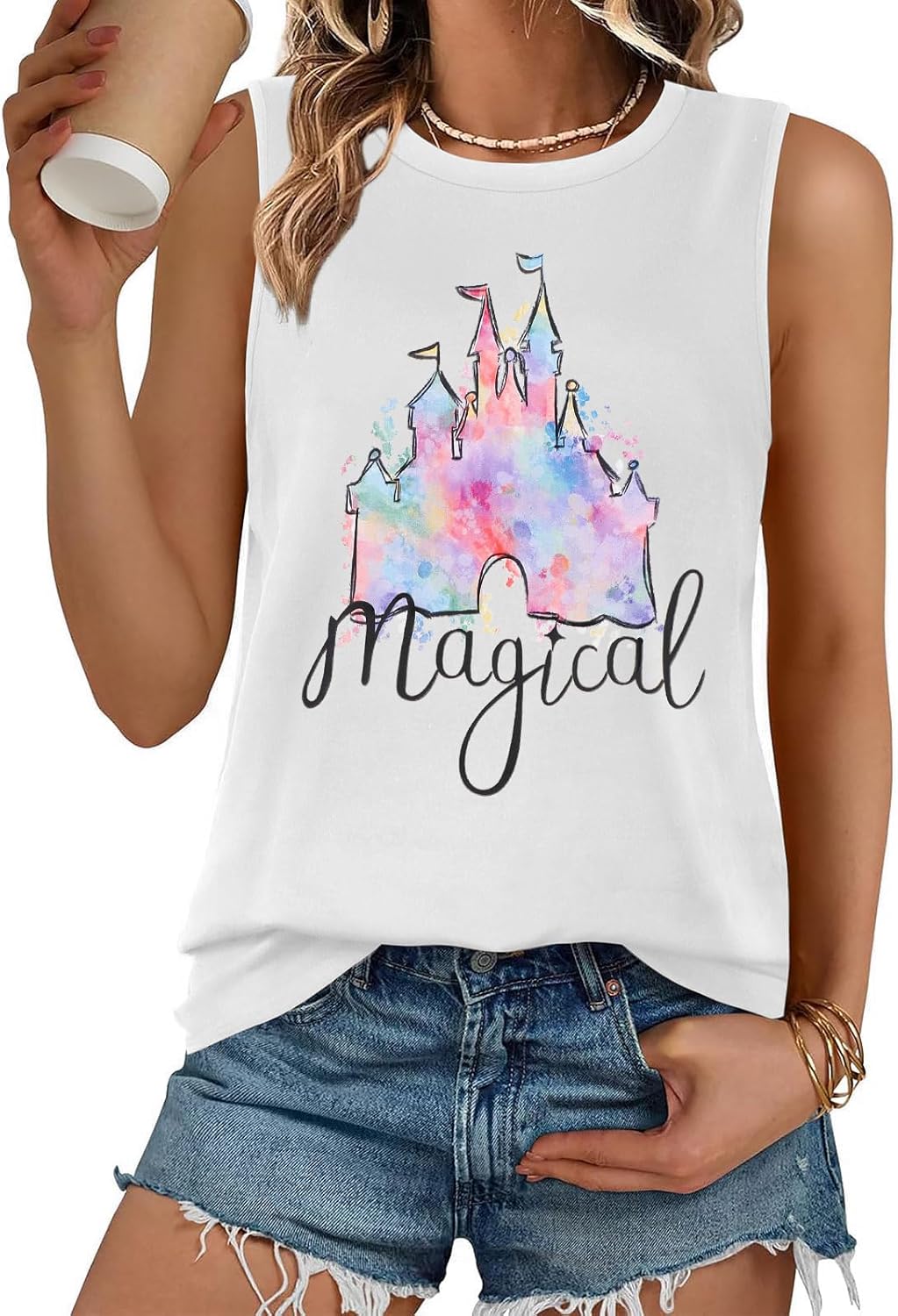 LUKYCILD Magic Castle Tank Top Women Magic Kingdom Shirts Graphic Tanks Summer Holiday Vacation Sleeveless Tops