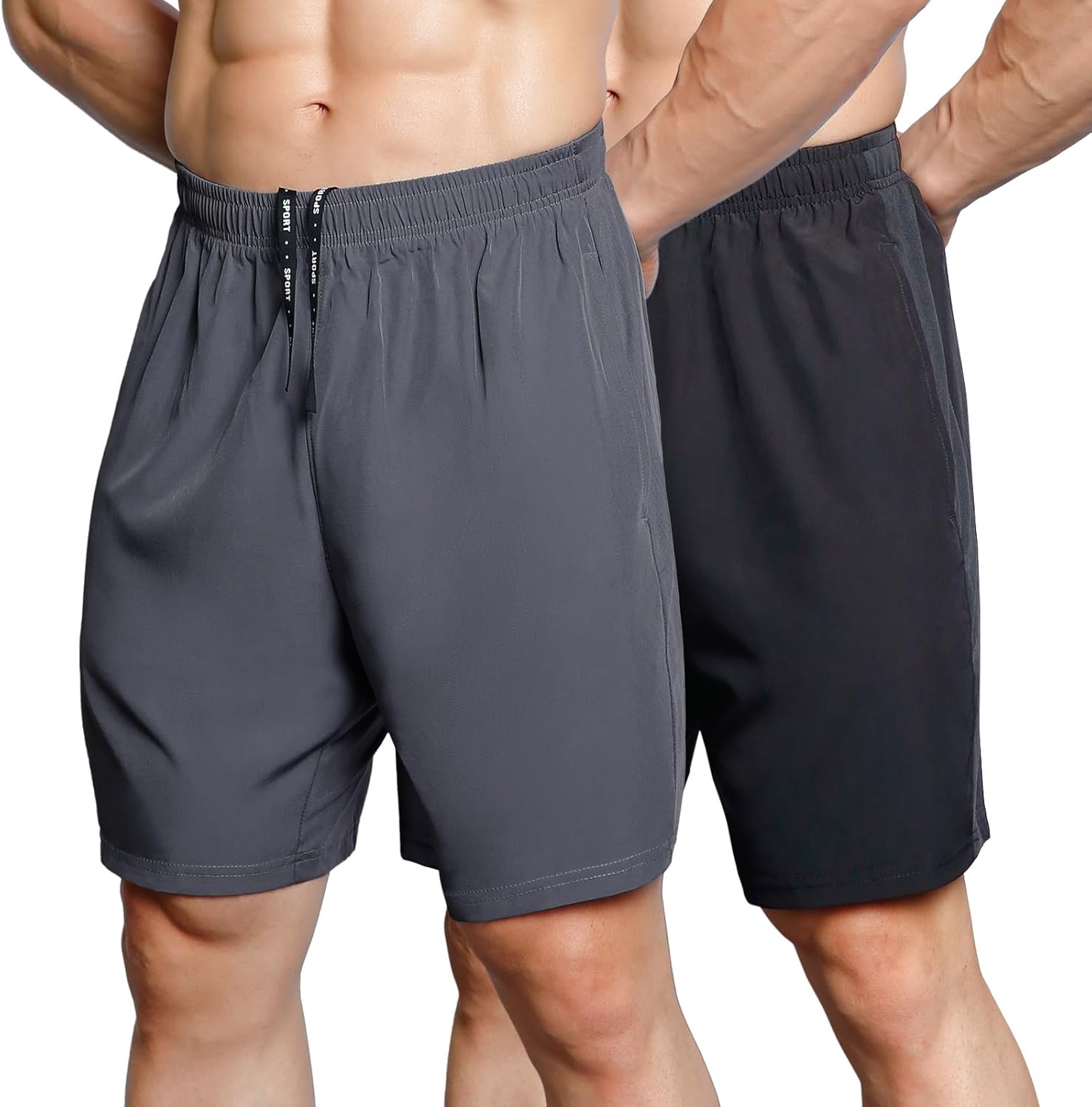 Men's 7" Athletic Shorts 2 Pack Quick Dry Workout Running Shorts with Zipper Pockets
