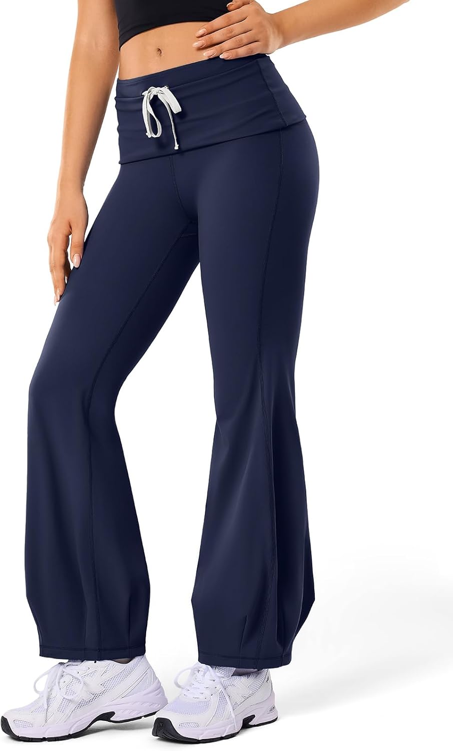 Fold Over Flare Leggings for Women with Harem Leg -Drawstring Yoga Pants Workout Bottoms for Pilates, Gym, Lounge