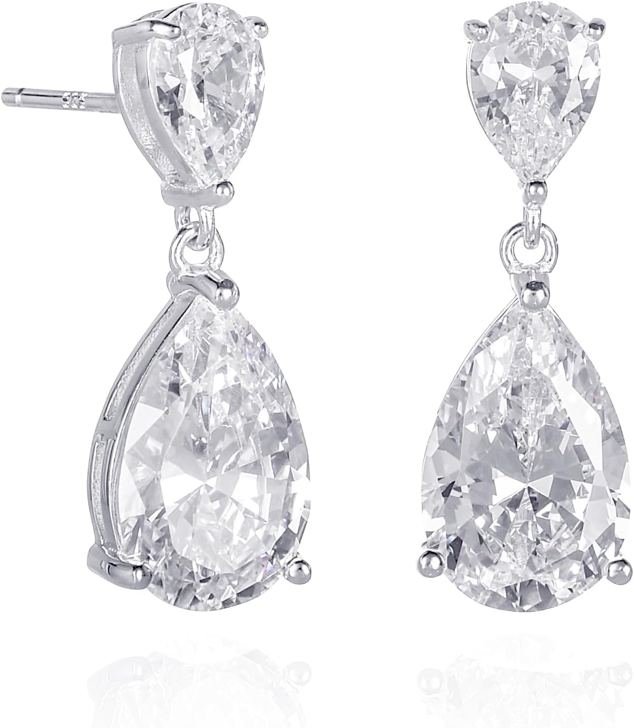 Diamond Treats 925 Sterling Silver Teardrop Earrings for Women with Colored and White Cubic Zirconia, Sterling Silver Drop Earrings for Women, Elegant Silver, Gold or Rose Gold Dangle Earrings,