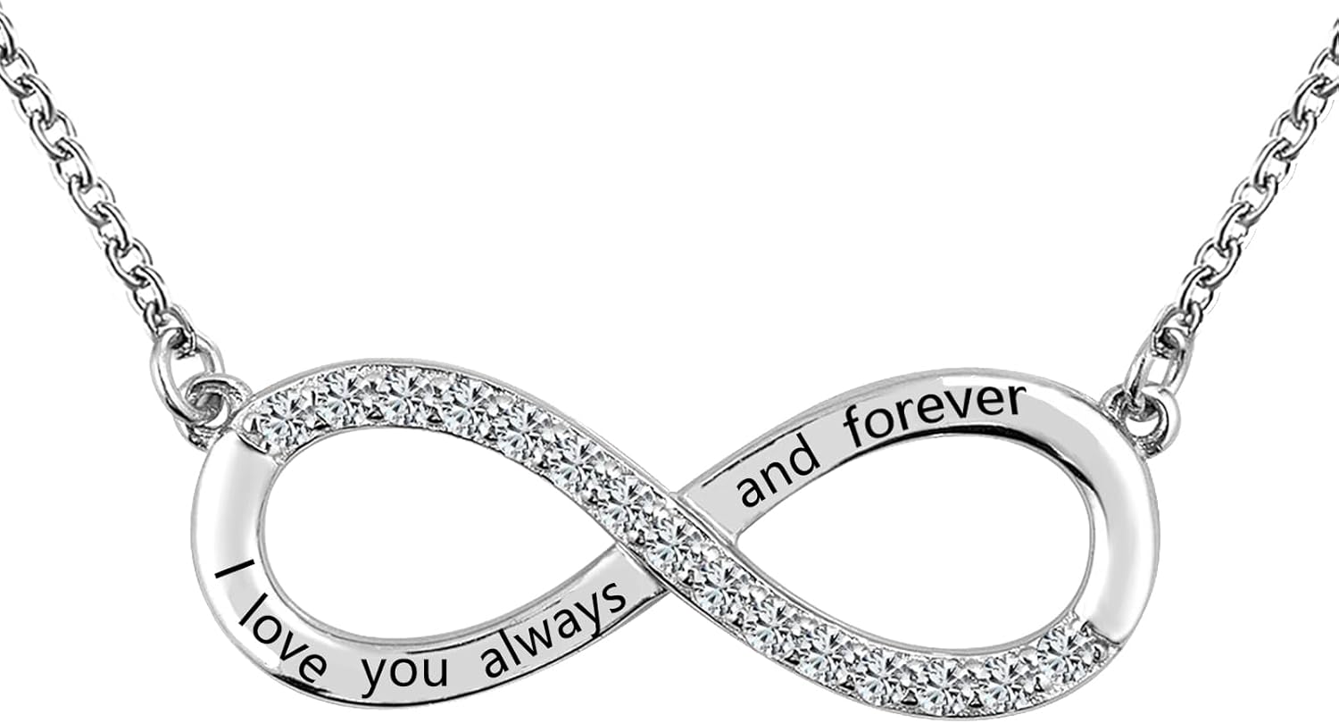 Womens Sparkling Infinity Love Necklace Birthday Gifts for Women Dainty Adjustable Love Heart Clear Crystal Pendant Necklaces