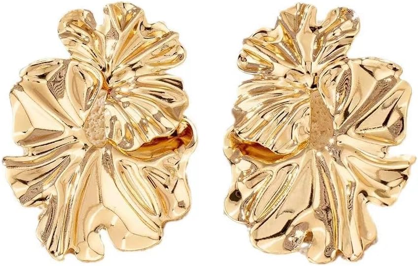 14K Gold Flower Earrings Double Flower Gold Statement Earrings for Women, Hypoallergenic Gold Floral Earrings Large Gold Earrings for Women Boho Jewelry Gift