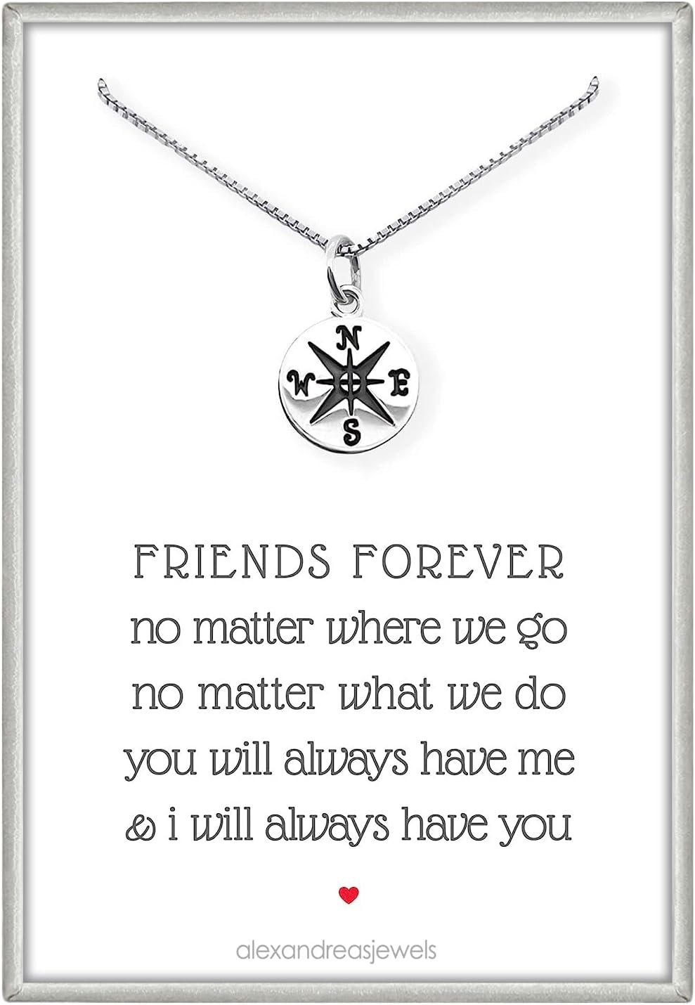 Sterling Silver Compass Necklace for Women, Small Compass Pendant Necklace Gift for Best Friend, Friendship Necklace, 2025 Graduation or Farewell Present, Long Distance Friend Gift