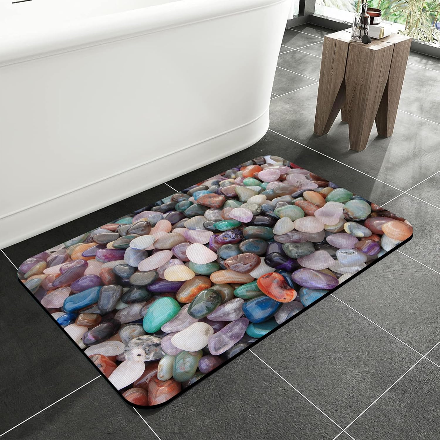 Colorful Cobblestone Bathroom Rugs,Absorbent Quick Dry Bath Mat,Water Absorbing Soft Easy Clean Shower Mat for Bathroom,Tub and Shower,Machine Washable,15.7"×23.6"