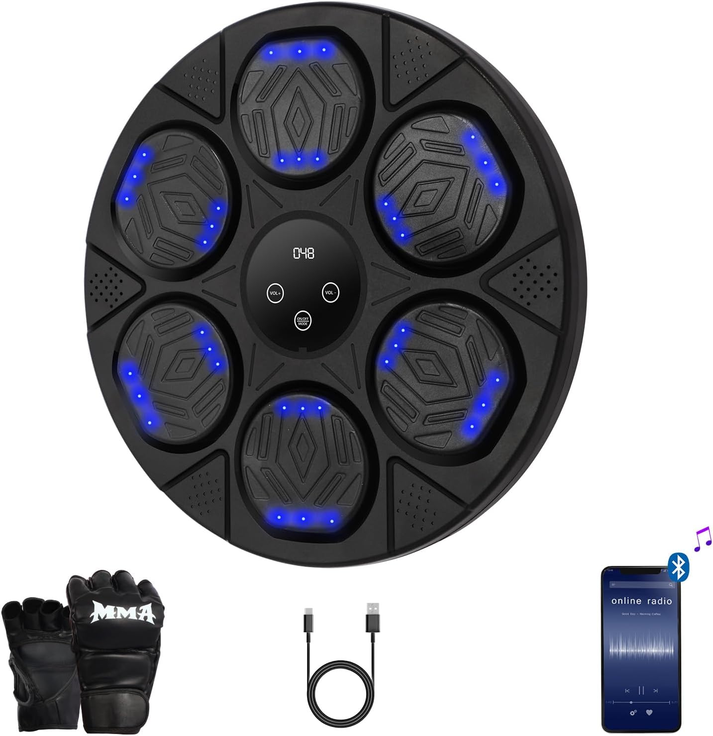 Music Boxing Machine, Bluetooth Boxing Traineing Machine with Boxing Gloves, Smart Wall Mounted Punching Bag for Kids Adult, Boxing Workout Equipment Target for Home, Gym, Office
