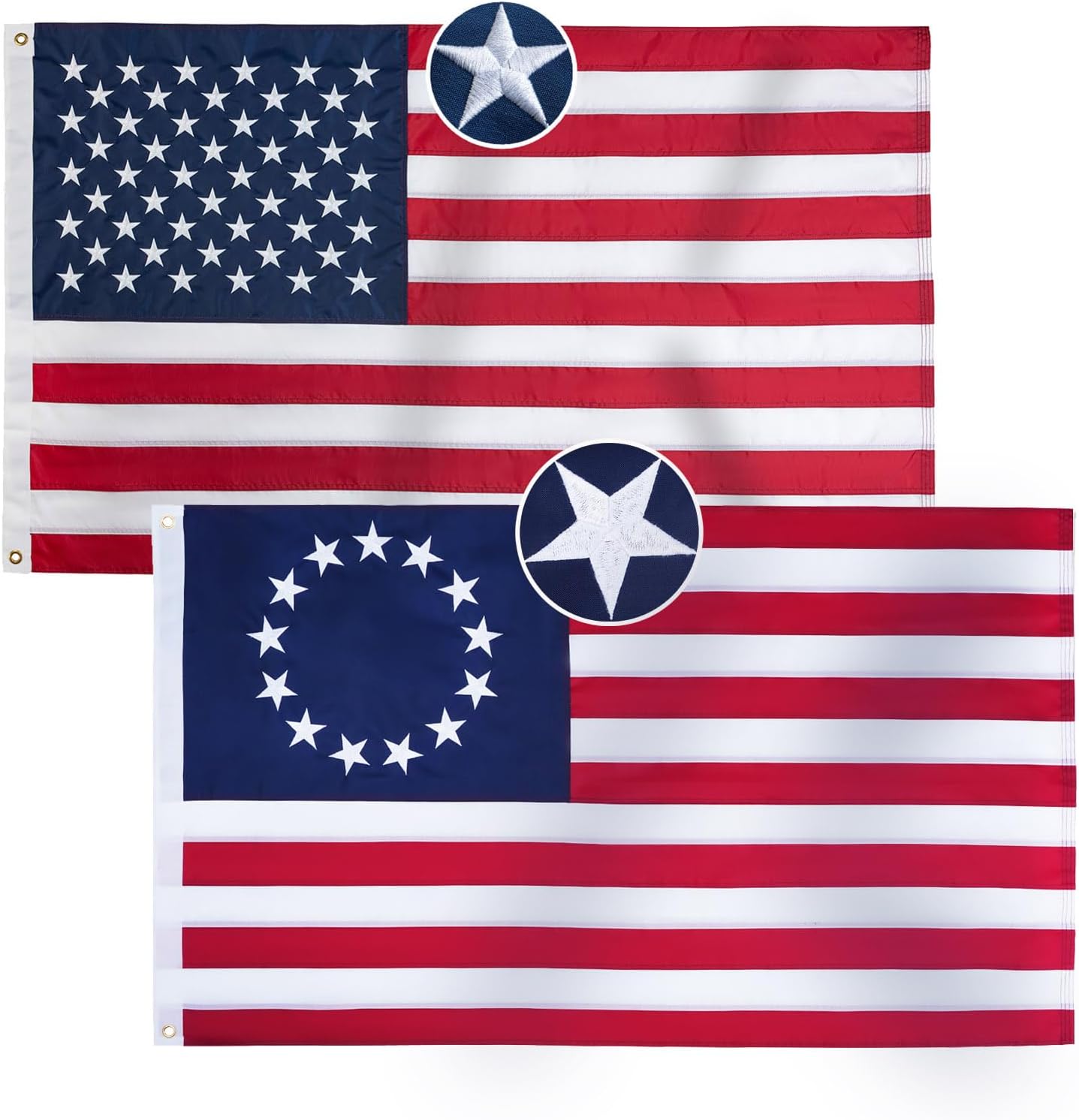 - Combo Pack: American flags 3x5 for outside and betsy ross flag 3x5 heavy duty outdoor. The combo pack is excellent flag for all Americans to be flying at this time of controversy in the United States, perfect for the upcoming 250th anniversary