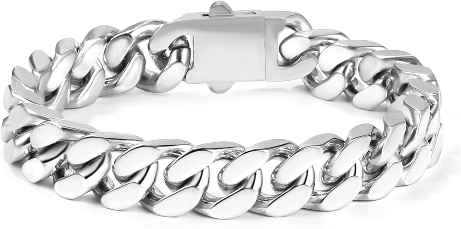 Cuban Link Bracelet for Men Waterproof 316L Stainless Steel Bracelet Width 5mm/7mm/9mm/12mm, 7.5"/8.3"/9" Length, Miami Cuban Bracelet for Men Hip Hop Jewelry Men Gift
