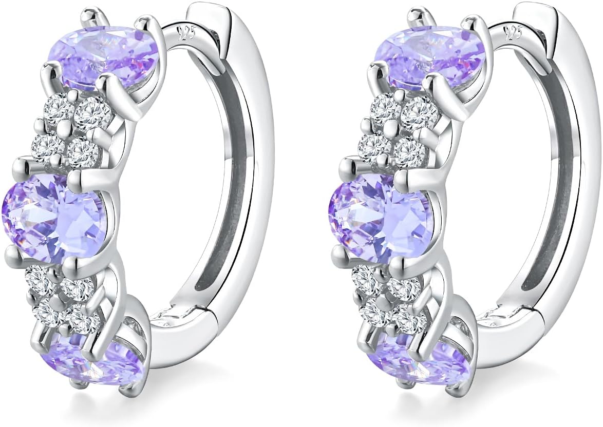 Small Hoop Earrings for Women Hypoallergenic 925 Sterling Silver 13.5mm Thick Huggie Earrings Hoops Created Gemstone Diamond Birthstone Wedding Earrings