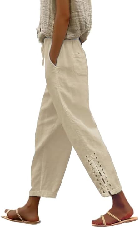 BIRW 2026 Summer Women Cotton Linen Pants Casual High Waist Comfy Lightweight Gauze Pants with Pockets Loose Trousers