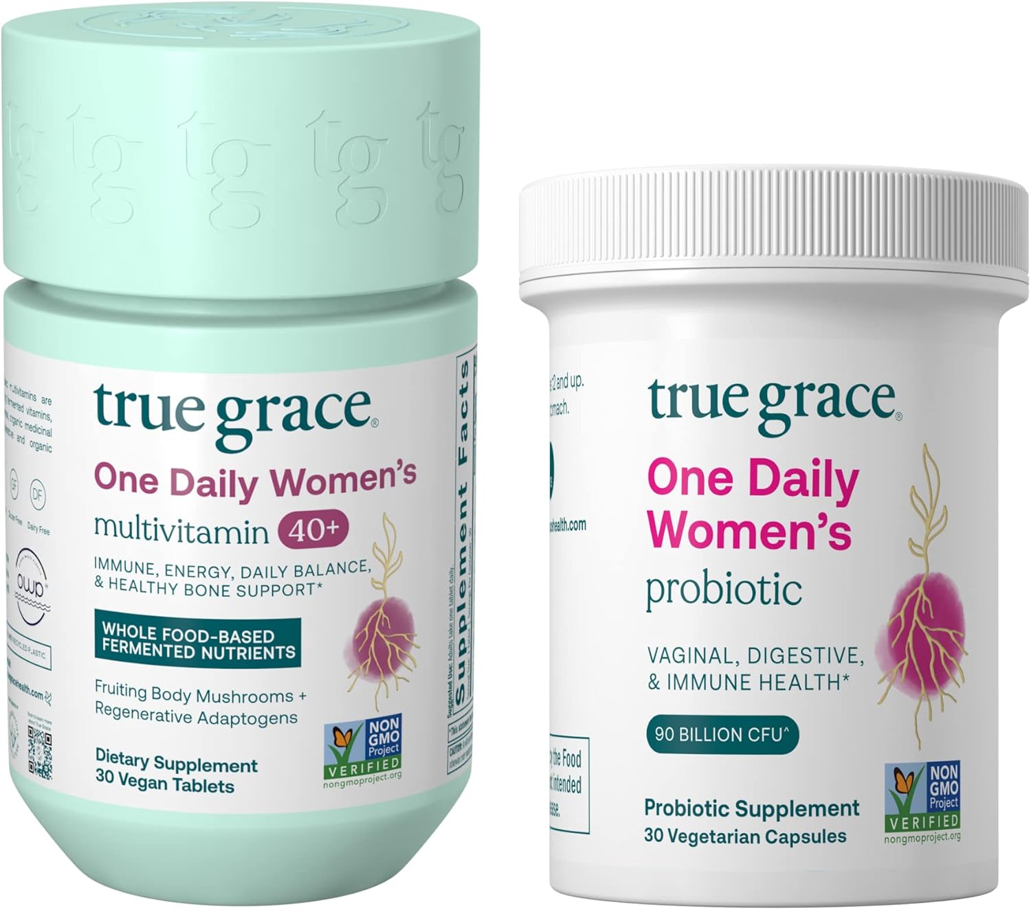 - MULTIVITAMIN & PROBIOTIC BUNDLE - This multipack from True Grace includes one bottle of One Daily Women’s Multivitamin 40+ (30 Vegan Tablets) and one bottle of One Daily Women’s Probiotic (30 Vegetarian Capsules).