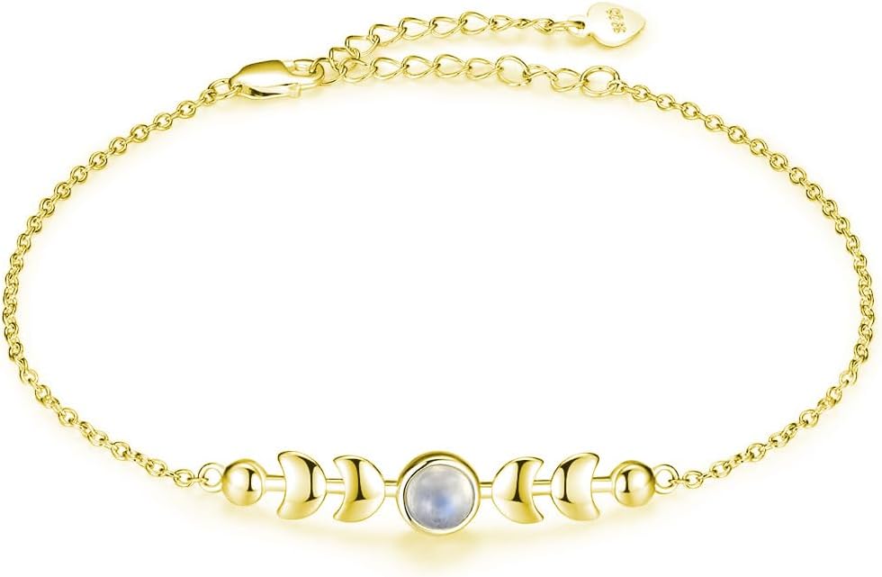 Genuine Moonstone Bracelet Sterling Silver Moon Phase Bracelet Minimalist Moonstone Jewelry for Mom Friends Daughter (Gold)