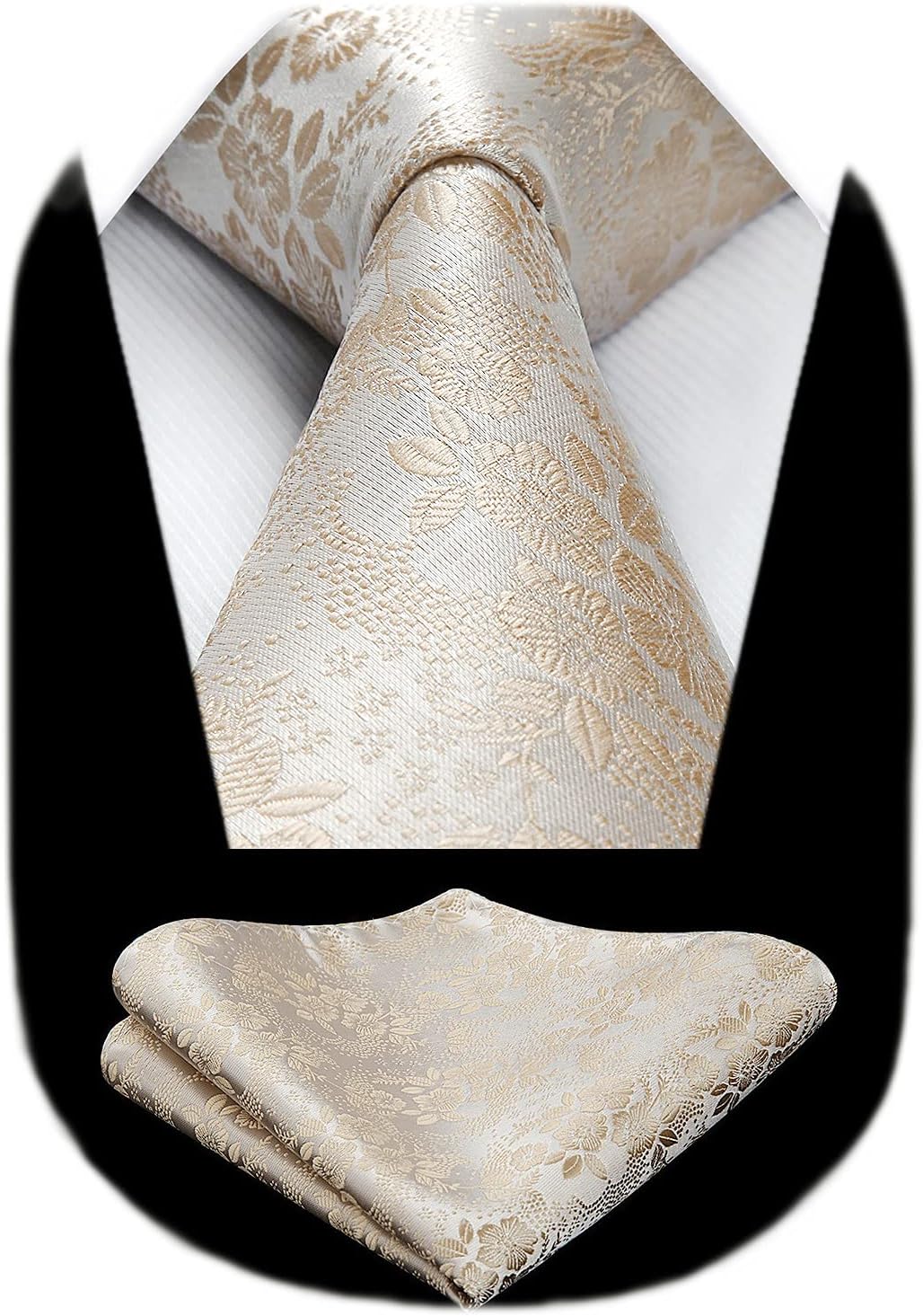 HISDERN Men Floral Ties Woven Classic 3.4" Necktie Set Formal Tie Pocket Square for Wedding with Handkerchief Gift Box