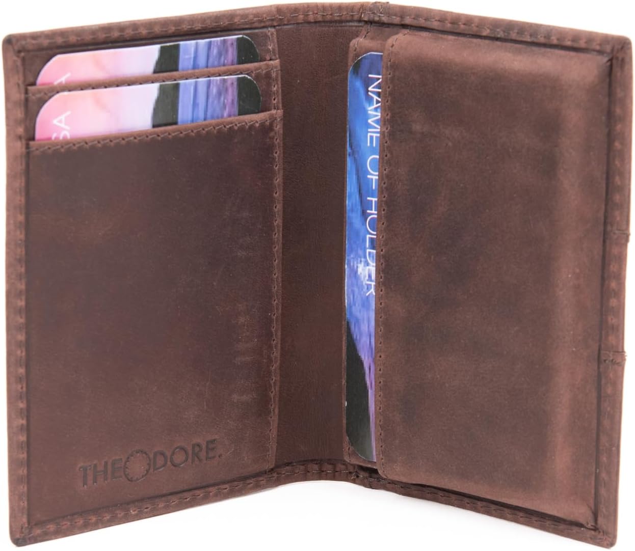 Theodore Slim Leather Card Holder for Men – RFID Blocking Top Grain Leather Wallet – 6 Card Slots, Vertical Minimalist Front Pocket Design – Vintage Brown