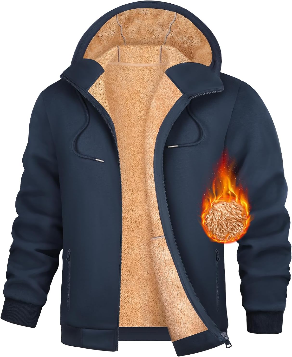 Men's Fleece Hoodie Winter Zip Up Sweatshirt Sherpa Lined Jacket Heavyweight Hoodies Pullover Warm Coat Hooded