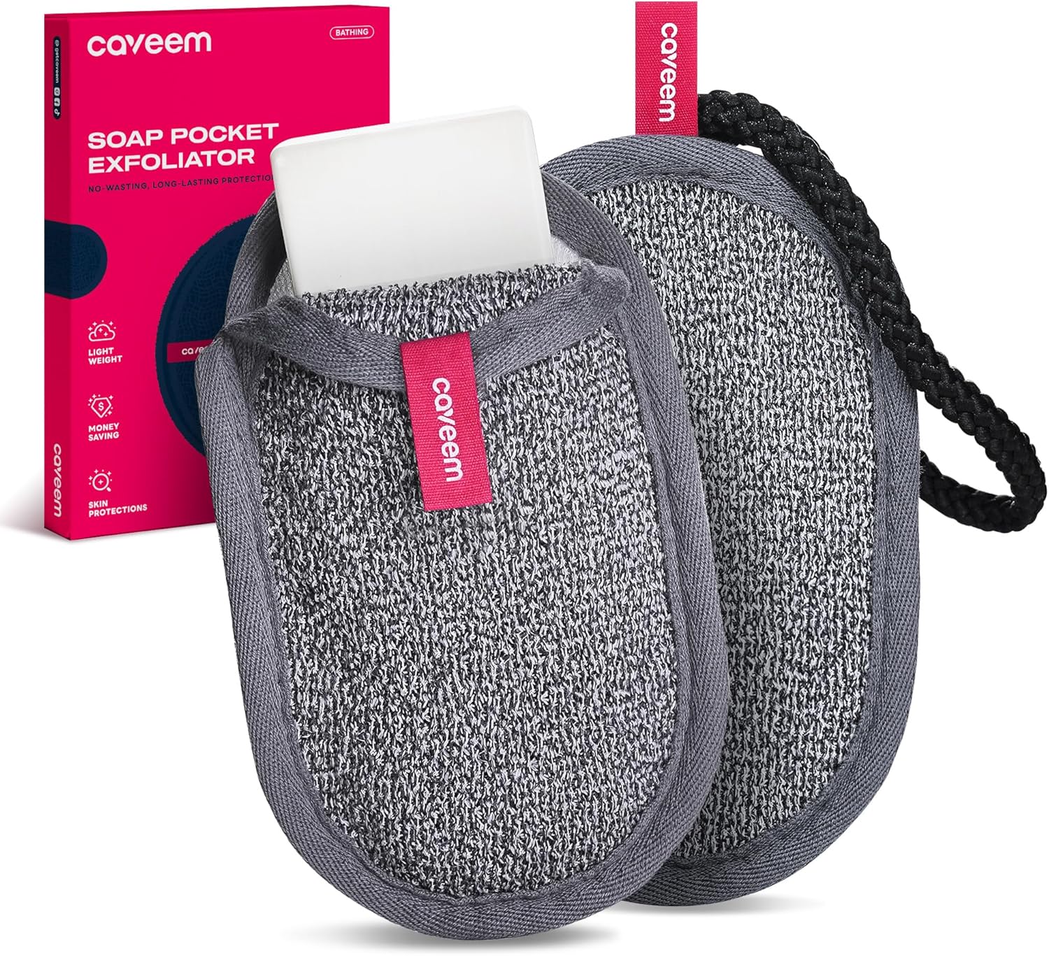 - [GENTLE EXFOLIATION] Perfect for daily care and sensitive skin needs. The dual-textured soap bar loofah pouch is designed for sensitive skin. One side gently cleanses, while the other softly exfoliates, providing a smooth, skin-friendly experience