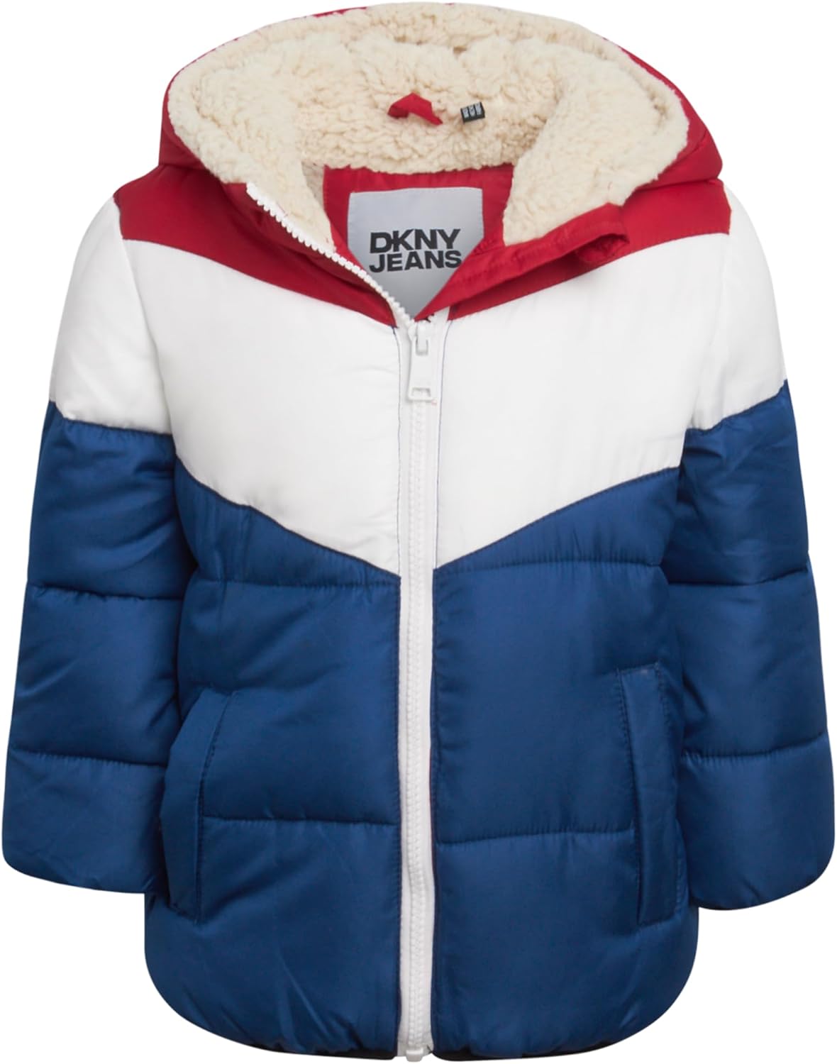 DKNY Baby Infant Boys' Puffer Jacket - Toddler Puffer Coat Full Zip Up Sherpa Lined Quilted Hooded Jacket (Sizes: 12M-4T)