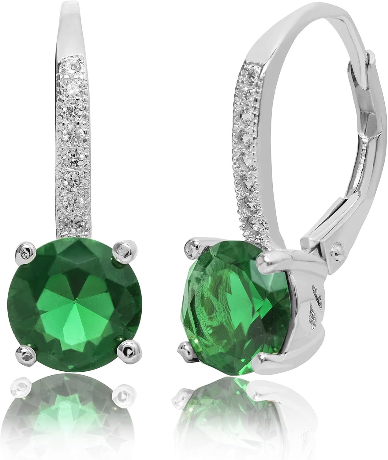 Lesa Michele Rhodium Plated 925 Sterling Silver Cubic Zirconia Drop Lever Back Bridal Earrings for Women Imitation Birthstone