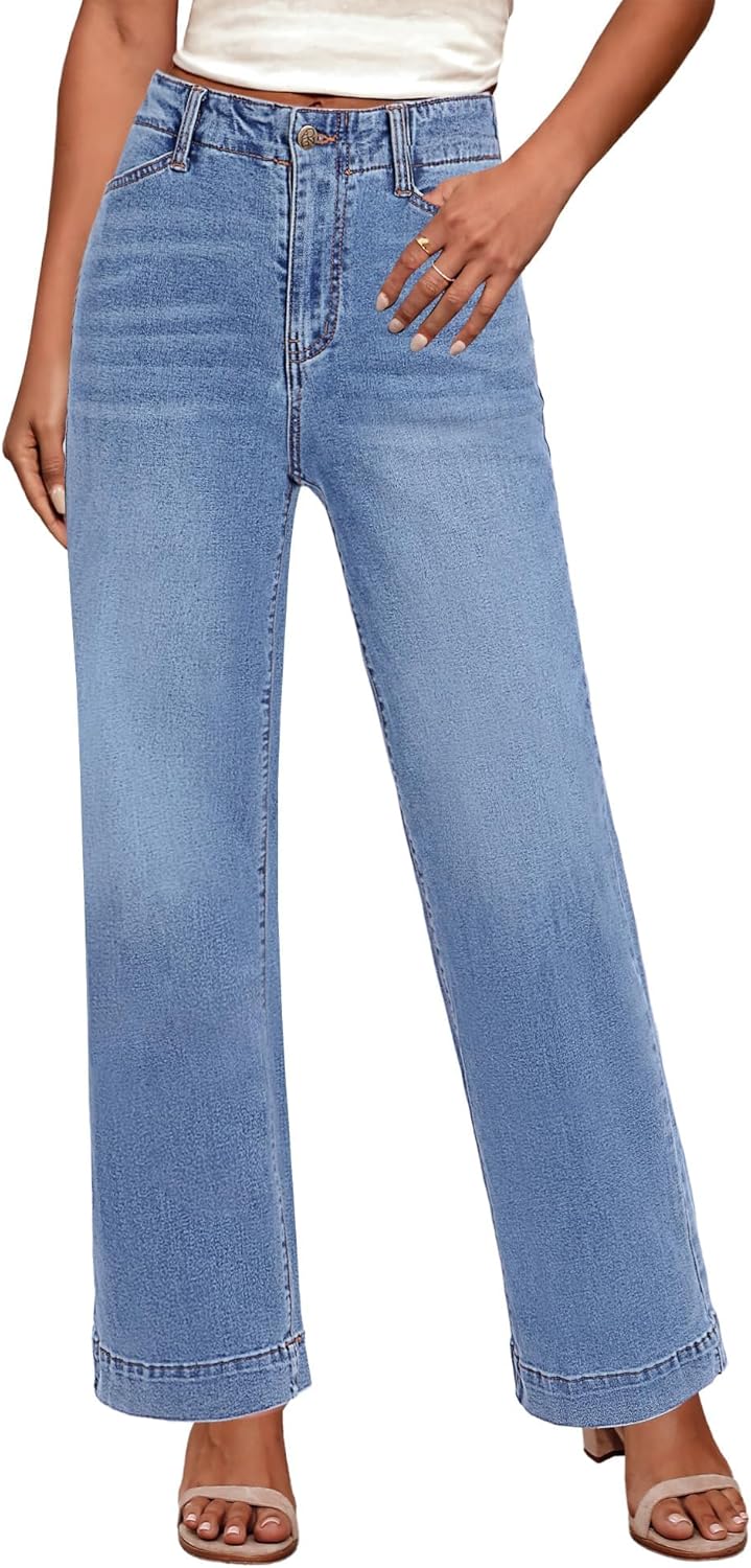 GRAPENT Wide Leg Jeans Woman High Waisted Trendy Stretchy Denim Pants Classic Trouser Jeans with Slash Pockets