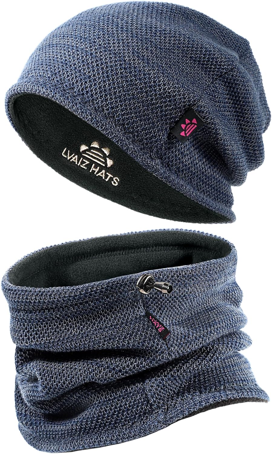Winter Mens Beanie Hat Scarf Warm Fleece Lined Windproof Knit Ski Women Beanie Skull Cap Neck Warmer Gaiter Set
