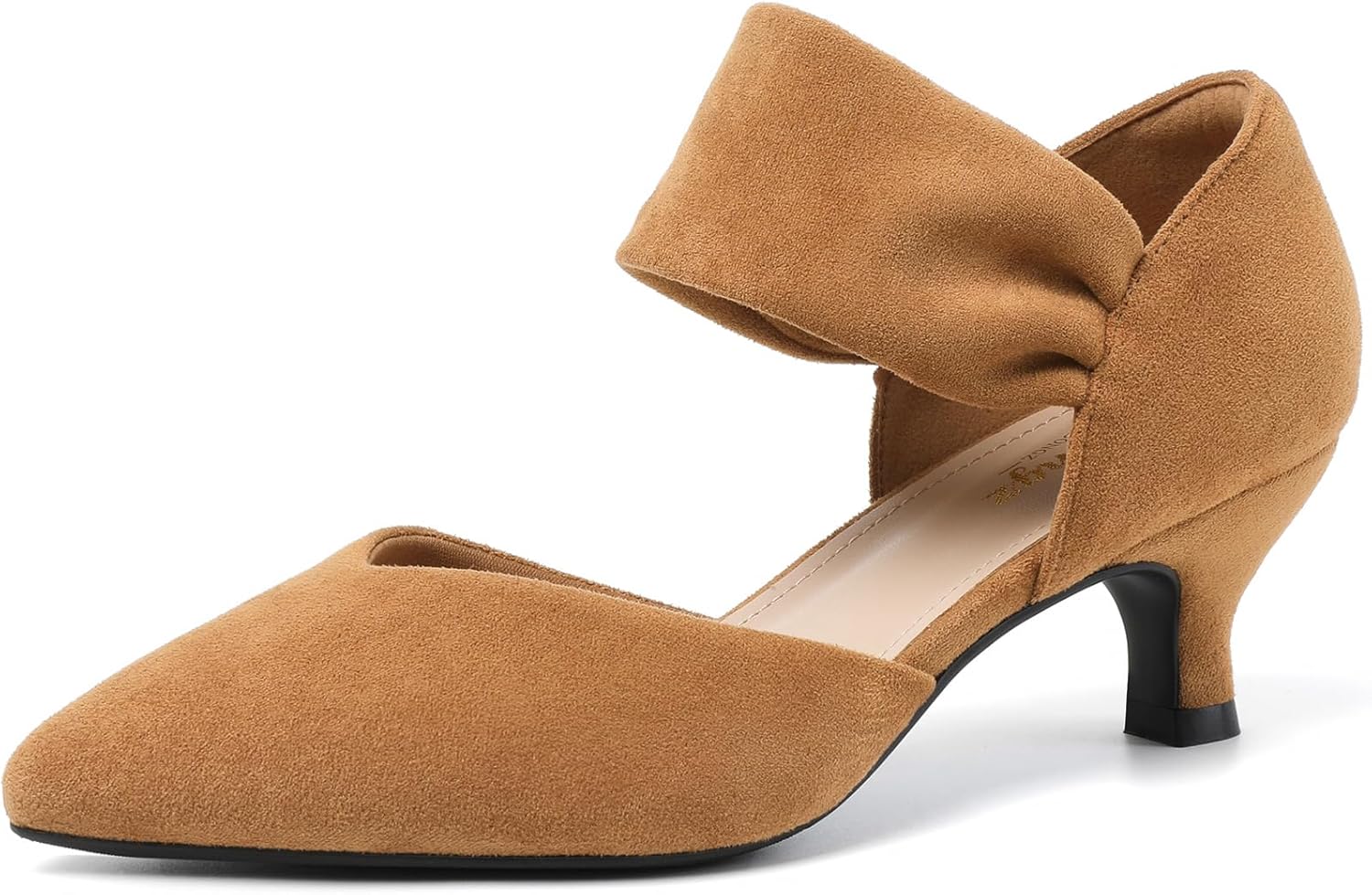 RIBONGZ Kitten Heels for Women Closed Toe Comfortable Low Heels Pointed Toe Sexy Slip on Pumps Bridal Party Dressy Shoes