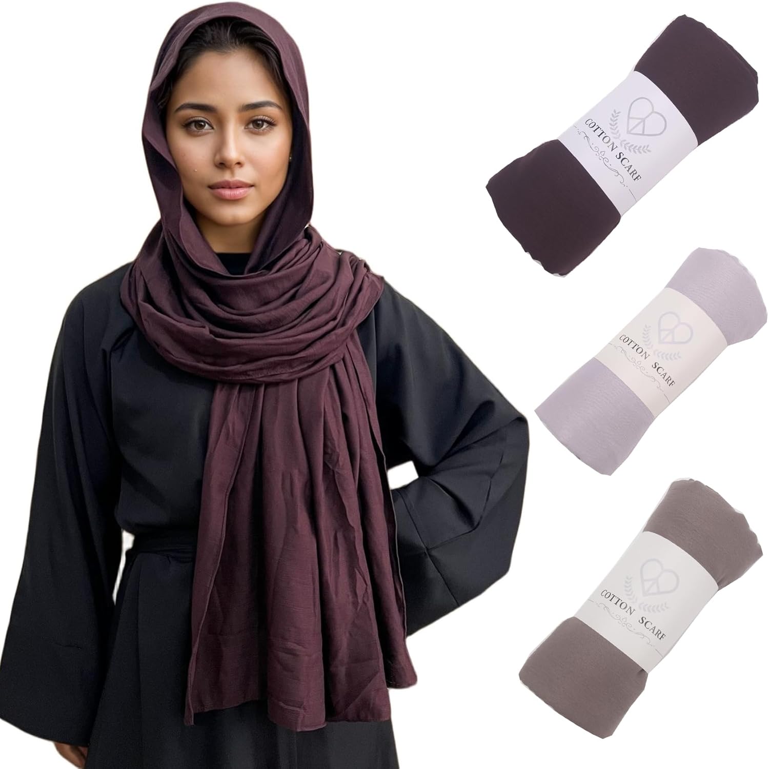 Crinkle Cotton Head Scarf Shawl,3PCS Long Hijab,Plain Color Breathable Turbans Headwraps for Muslim Women