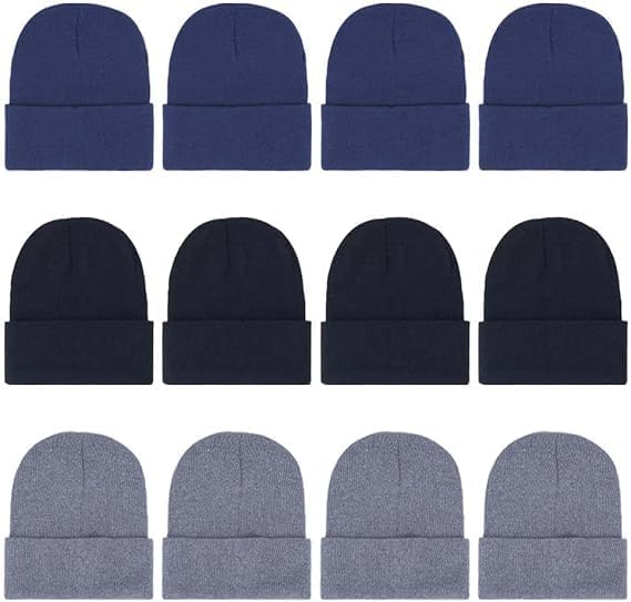 12 Packs Kids Beanies Winter Hats Warm Variety Pack, Assorted Colors Cuffed Knit Caps for Boys Girls Wholesale